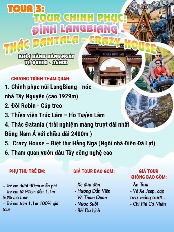 TOUR 3 - TOUR CHINH PHỤC ĐỈNH LANGBIANG - THÁC DANTALA - CRAZY HOUSE